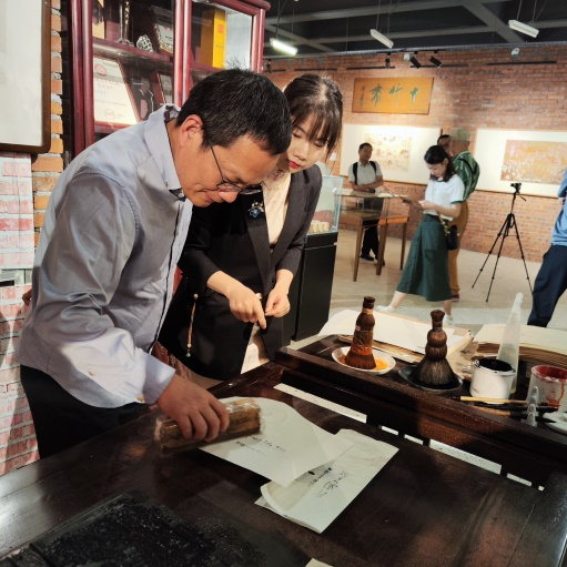 首先在林晓瑛副校长的带领下,大家参观了观成实验学校的“十竹斋 木版水印”博物馆,听取十竹斋非遗传承人魏新老师的解说,并体验传统非遗技术。