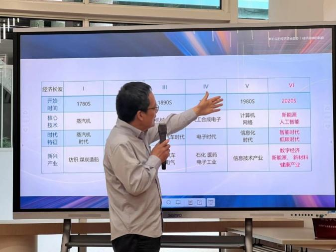 然后在观成实验学校的图书馆,浙江省社会科学院经济研究所所长徐剑锋分享了《浙江经济形势分析》,阐述了社会的经济周期性,了解疫情后经济的稳步回升,推出了振兴经济的几大举措,利用宽松的货币财政政策机遇,优化产业空间布局和对外开放格局,实现稳就业、增收入和共同富裕。让我们进一步了解了我省经济情况,提升了振兴经济的信心和对未来的期待。