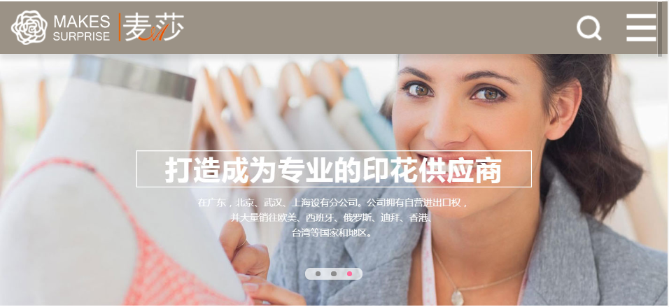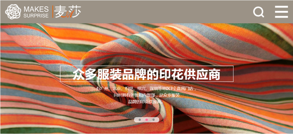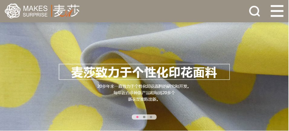 浙江麦莎针纺织有限公司(下称:麦莎)于2006年1月20日,坐落于风景优美的古城绍兴,是一家集设计,生产及销售各种中高 档印花面料的大中型企业。有广州、北京、织里、绍兴、深圳等地区7个直属门店,同时拥有外贸和内贸部,是众多服装品牌的印花供应商。