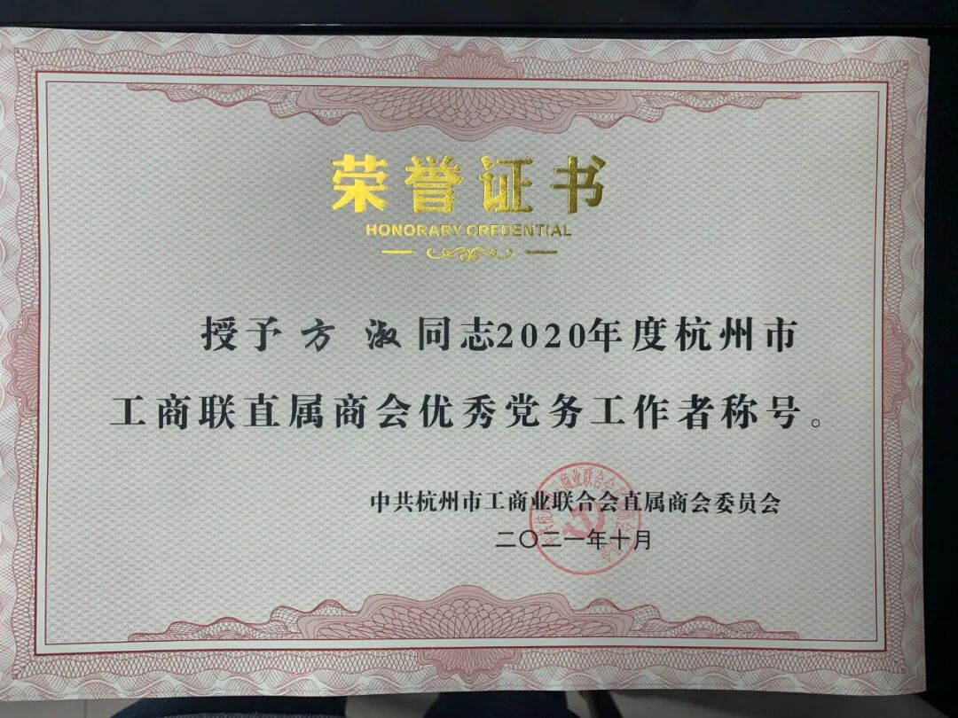 我商会党支部书记吴振化被评为“2020年度优秀共产党员”,秘书处方淑被评为“2020年度优秀党务工作者”
