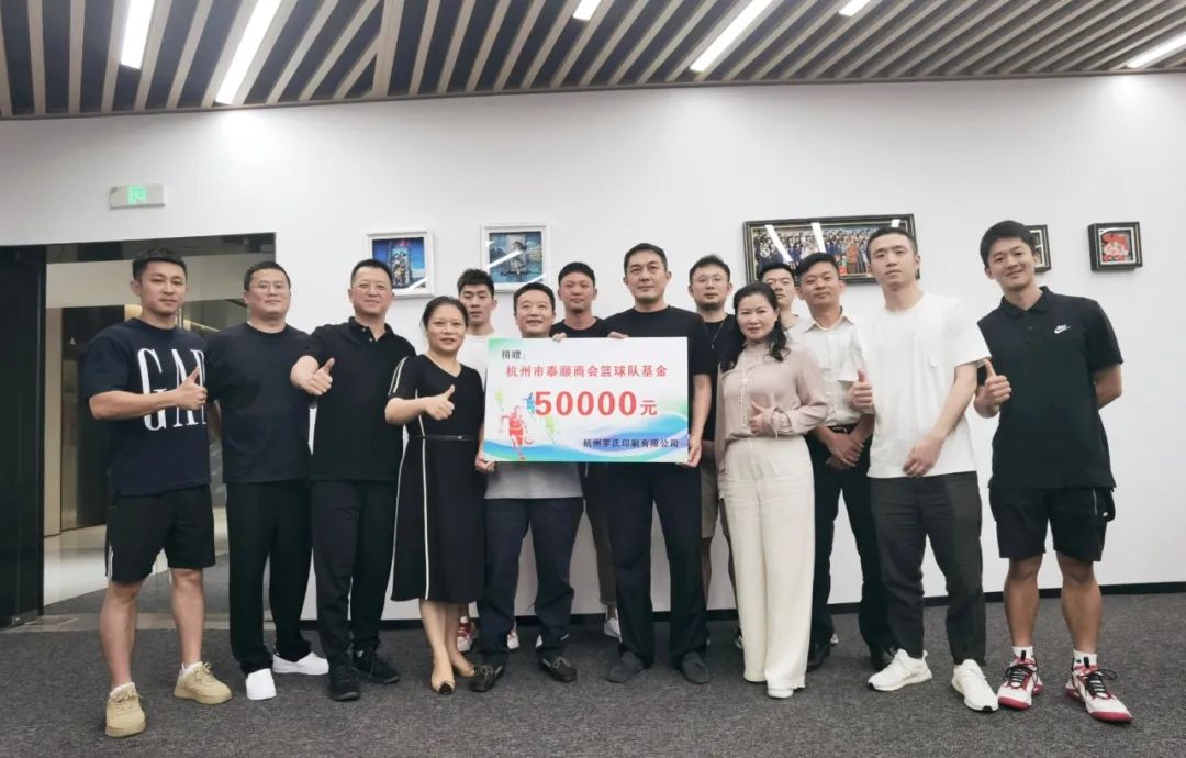 6月13日,新一轮杭州市泰顺商会篮球队基金启动仪式在举行,商会常务副会长、杭州罗氏印刷有限公司董事长罗飞云为专项基金添砖加瓦,赞助活动费50000元。篮球队成立于2017年,未来商会篮球队将再接再厉,在球队队长的带领下为商会,为泰顺争光添彩!