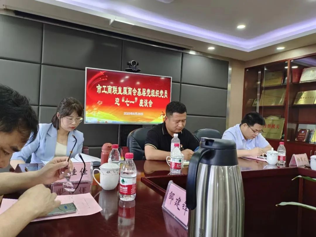 6月26日下午,杭州市工商联直属商会基层党组织党员迎“七一”座谈会在工商联会议室举行,我商会党支部副书记林琦参加此次座谈会,向工商联党委汇报商会党建工作情况。