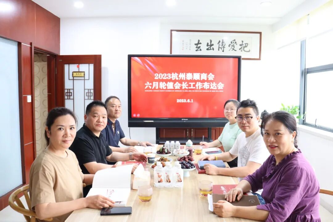 6月1日下午,杭州市泰顺商会六月轮值会长办公会议在博伦美业会议室举行。会议由秘书长林琦主持,六月轮值会长吴振化、胡英建、夏克度、周晓云及秘书处工作人员参加此次会议。