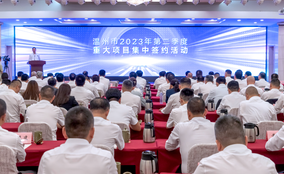 6月28日,温州市2023年第二季度重大项目集中签约活动举行,聚焦高端(先进)制造业、外资产业项目以及“数据得地”项目等,集中签约152个项目、计划总投资809亿元,将为温州高质量发展注入新动能、增添新活力。